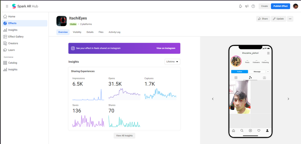 Using Photoshop, Blender and SPARK AR Filters Studio, I have made this cool looking Filter for Instagram and Facebook of Mangekyu Sharingan of none other than the Great Itachi Uchiha of the Uchiha Clan, from The Tale of Naruto Uzumaki. As an Anime weeb, it is an honor to "Have The Mangekyu Sharingan"...without killing your loved ones(XD)
